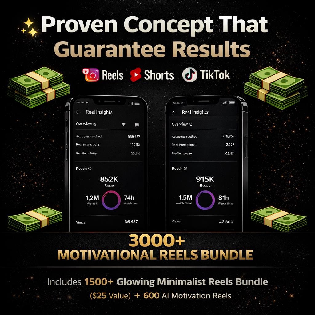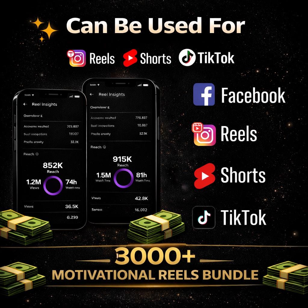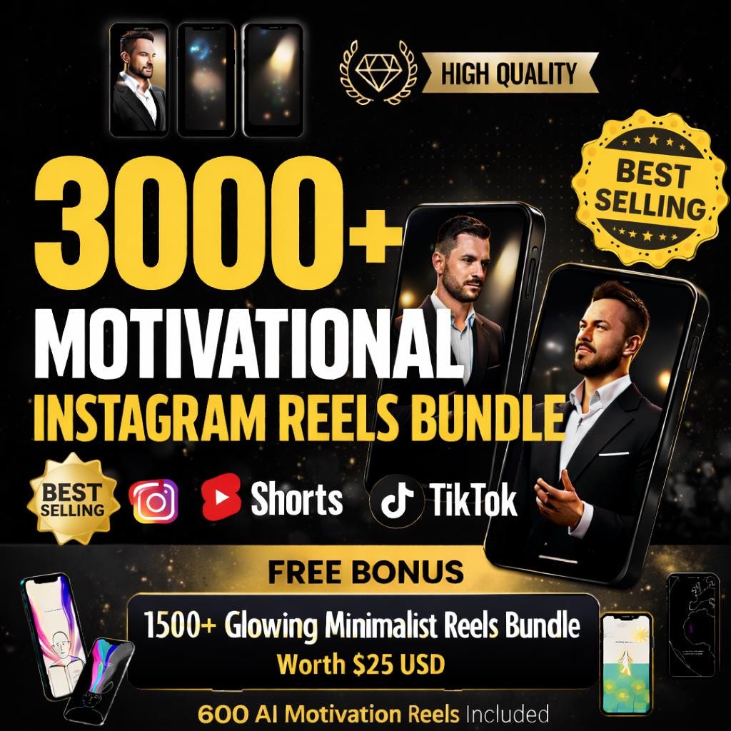 3000+ Viral Motivational Reels: Instagram, TikTok, YouTube Shorts (PLR & MRR) (Digital Download) | YouTube Growth, Reels Bundle, Insta Pack
